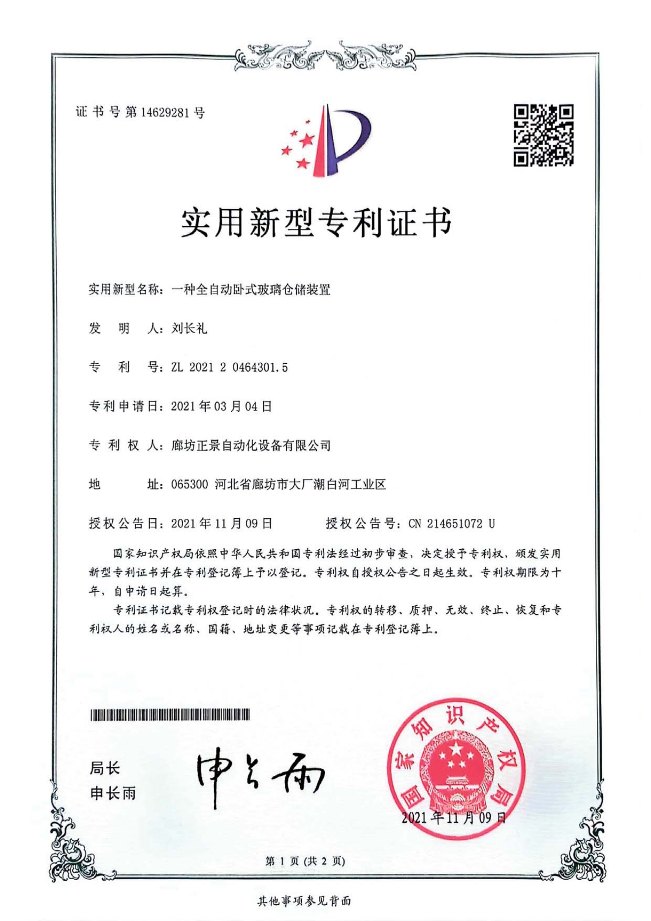 Horizontal Glass Warehousing Device
