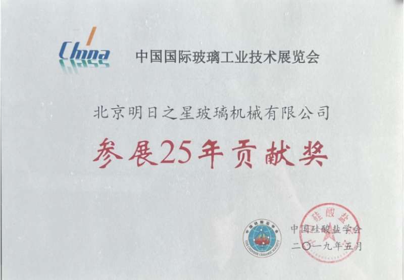25-Year Contribution Award for Participation in China Glass Exhibition