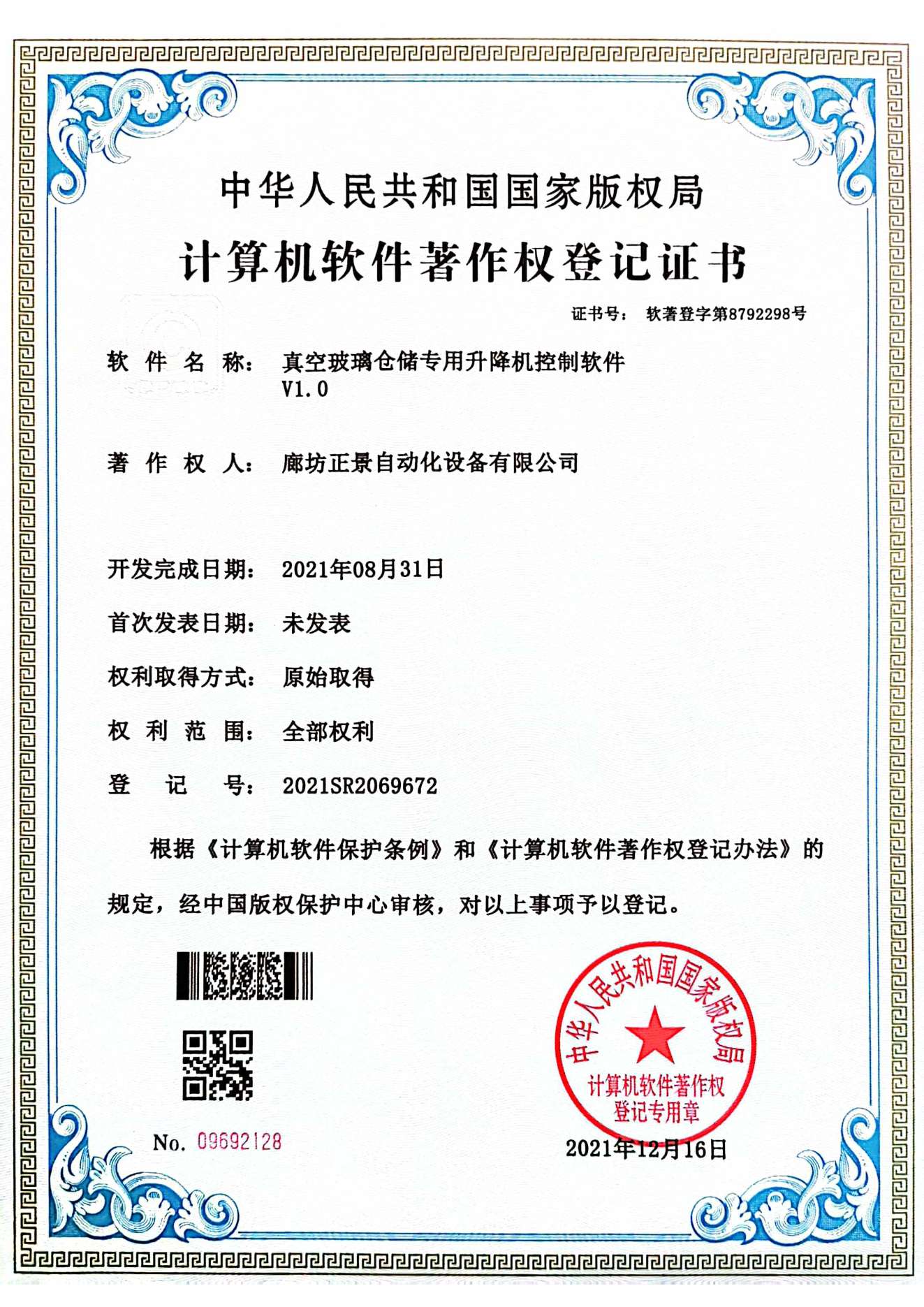 Control Software for Dedicated Vacuum Glass Warehouse Elevator